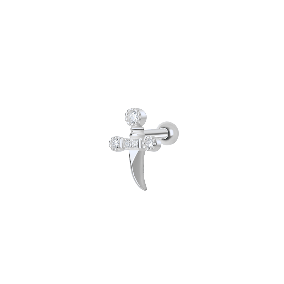 srebrny kolczyk helix w kształcie miecza z cyrkonią 6mm